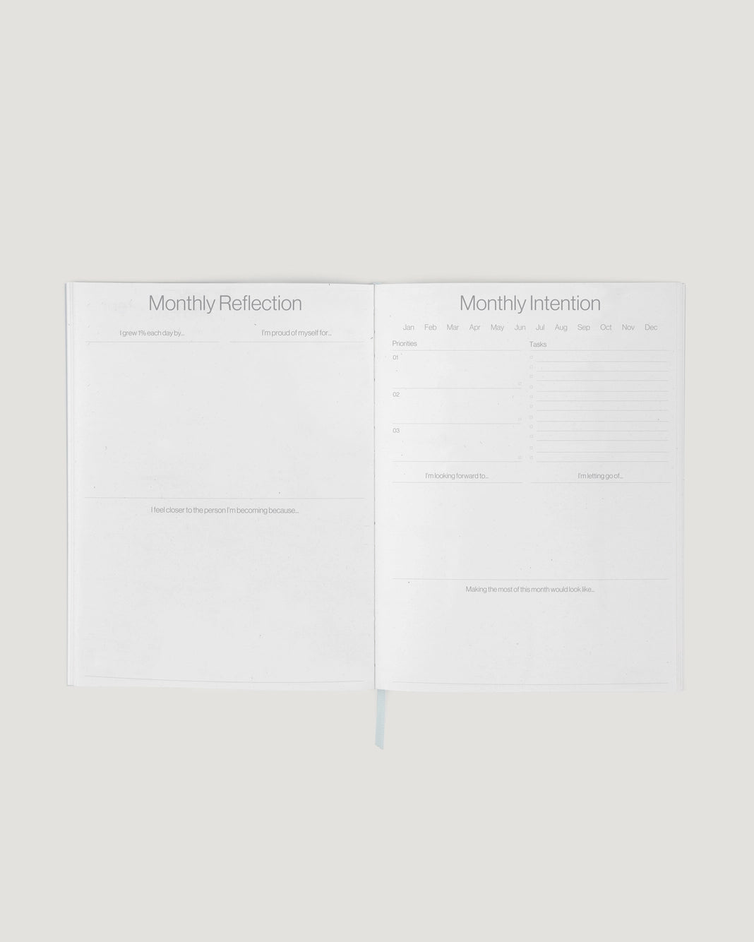 – Monthly Intention Page: Set priorities, look forward, let go and define how you are evolving for the month ahead