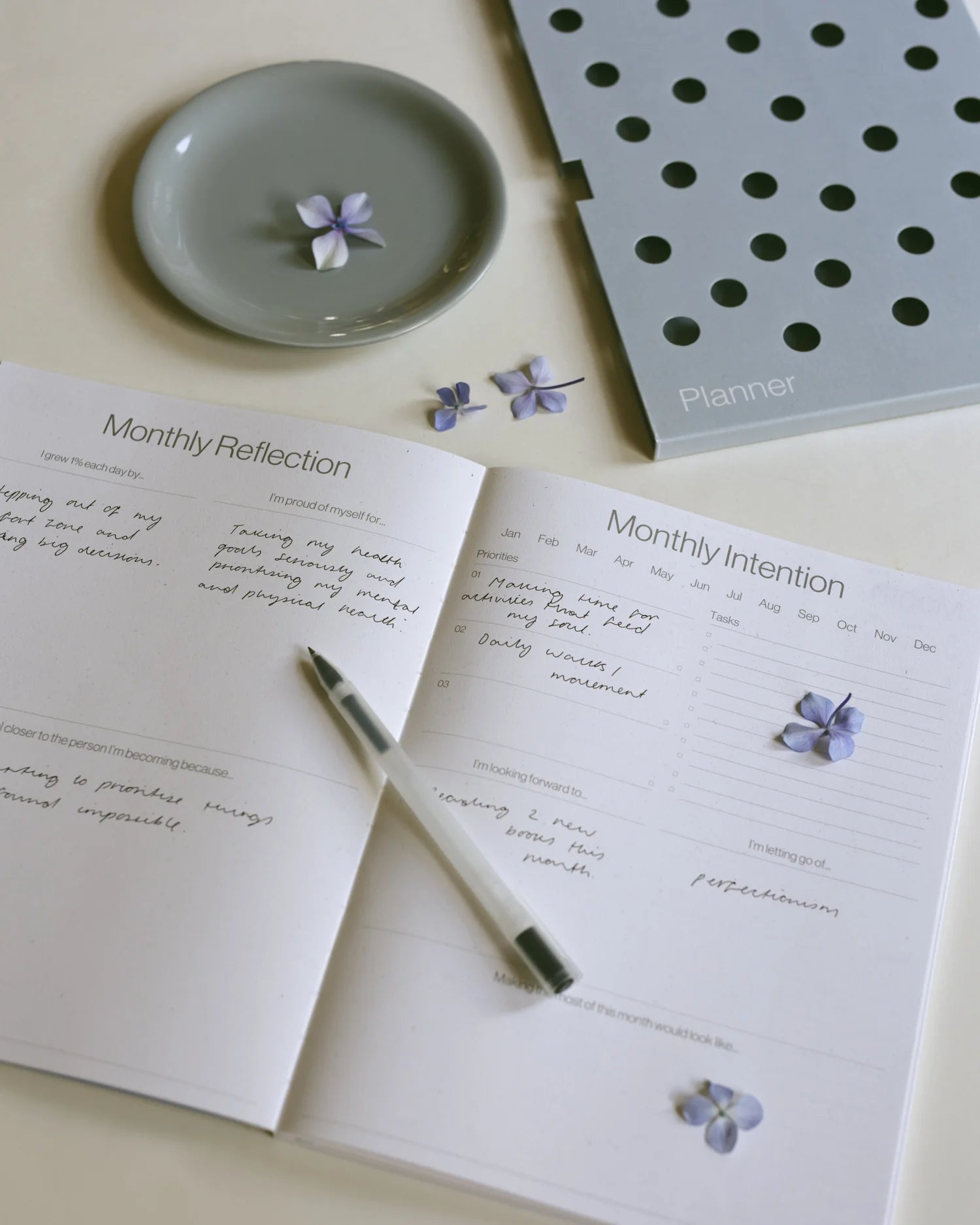 The Month Planner invites you to shift your focus from grand plans to consistent, meaningful progress. With thirty daily chances to move closer to the life you want, each day becomes an opportunity to make one small choice that supports your growth. This planner isn’t about doing it all—it’s about showing up, 1% at a time.
