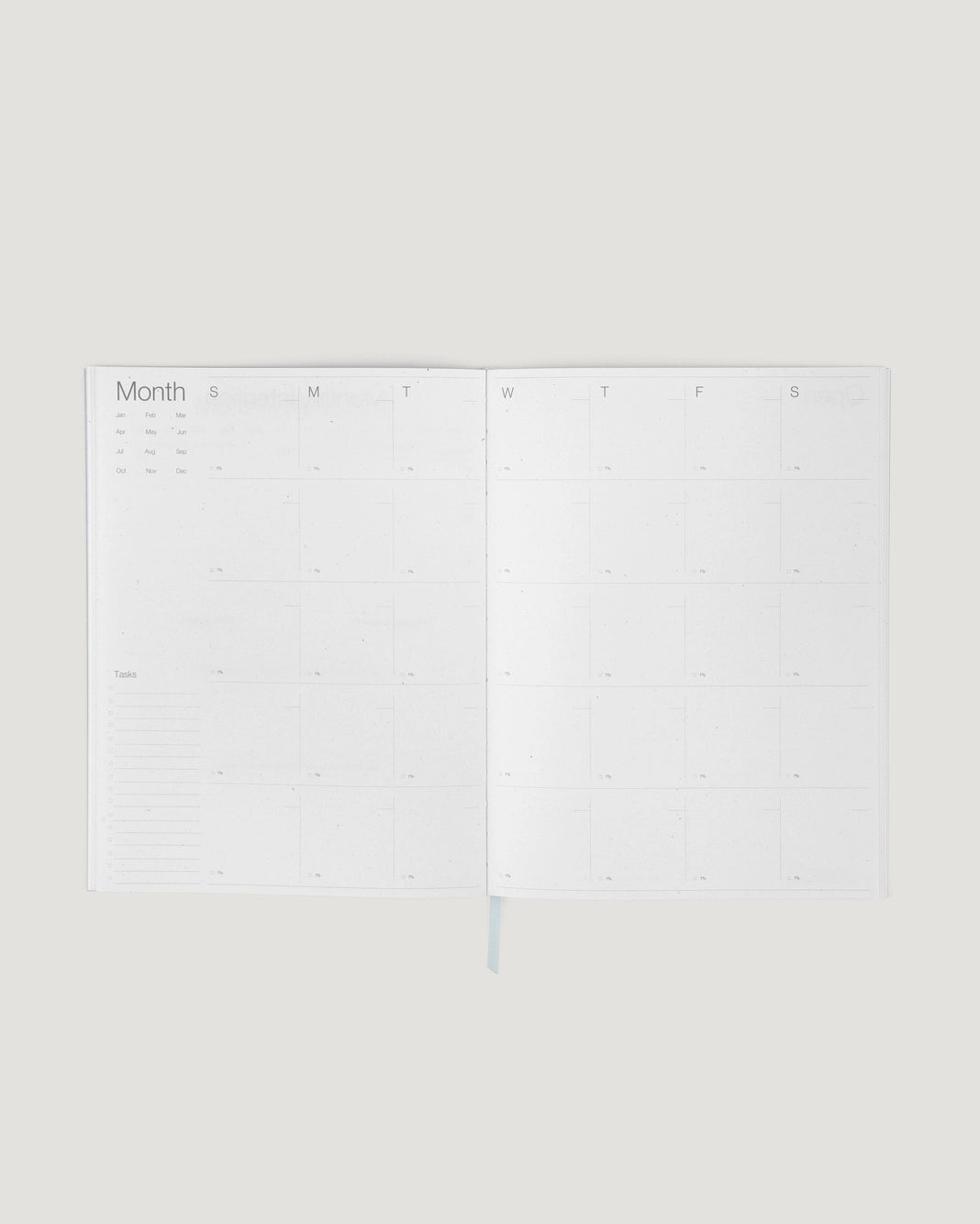 – Monthly Planning Spread: Simple undated layout with a daily 1% reminder to take a small step towards growth
