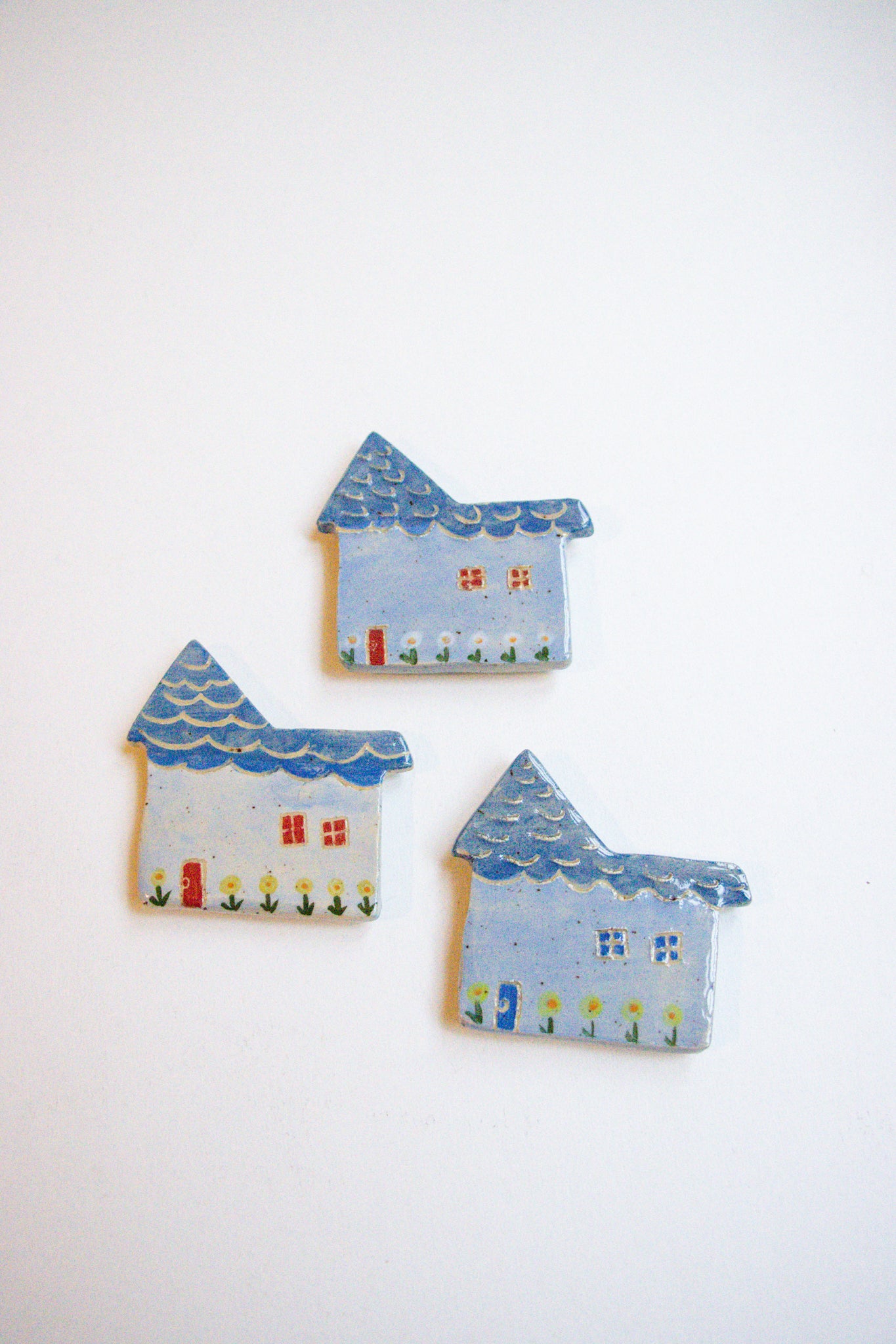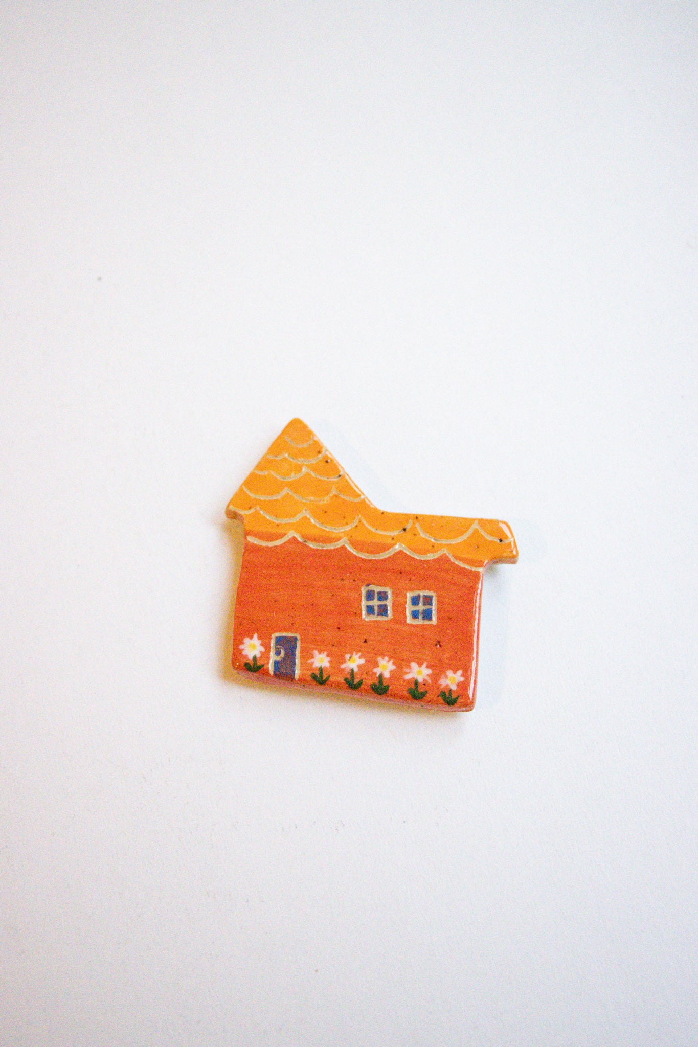 A ceramic house magnet for your fridge or anywhere it sticks! Available in a variety of colours. Please note the house decor and colours of doors and windows will vary!