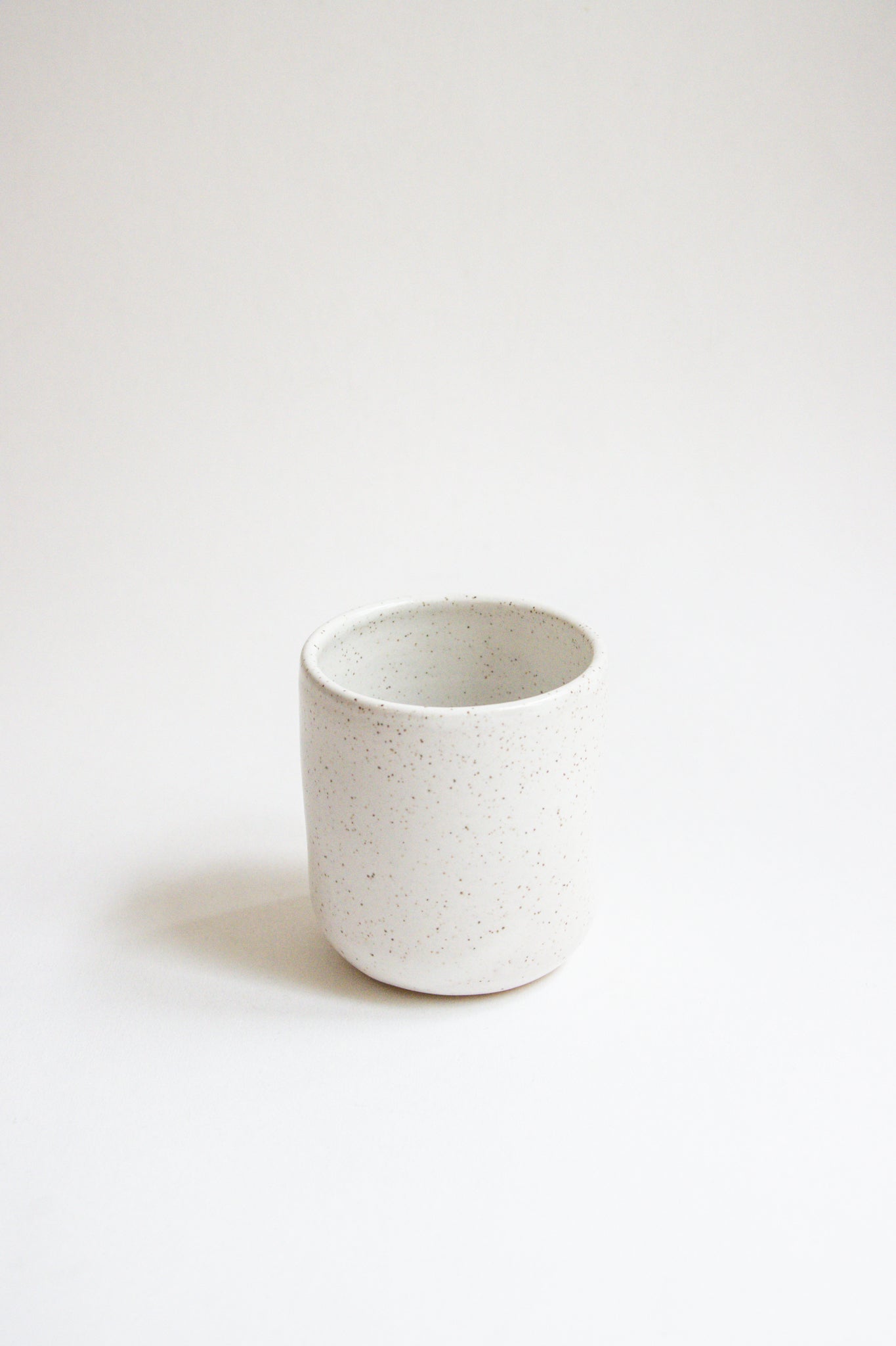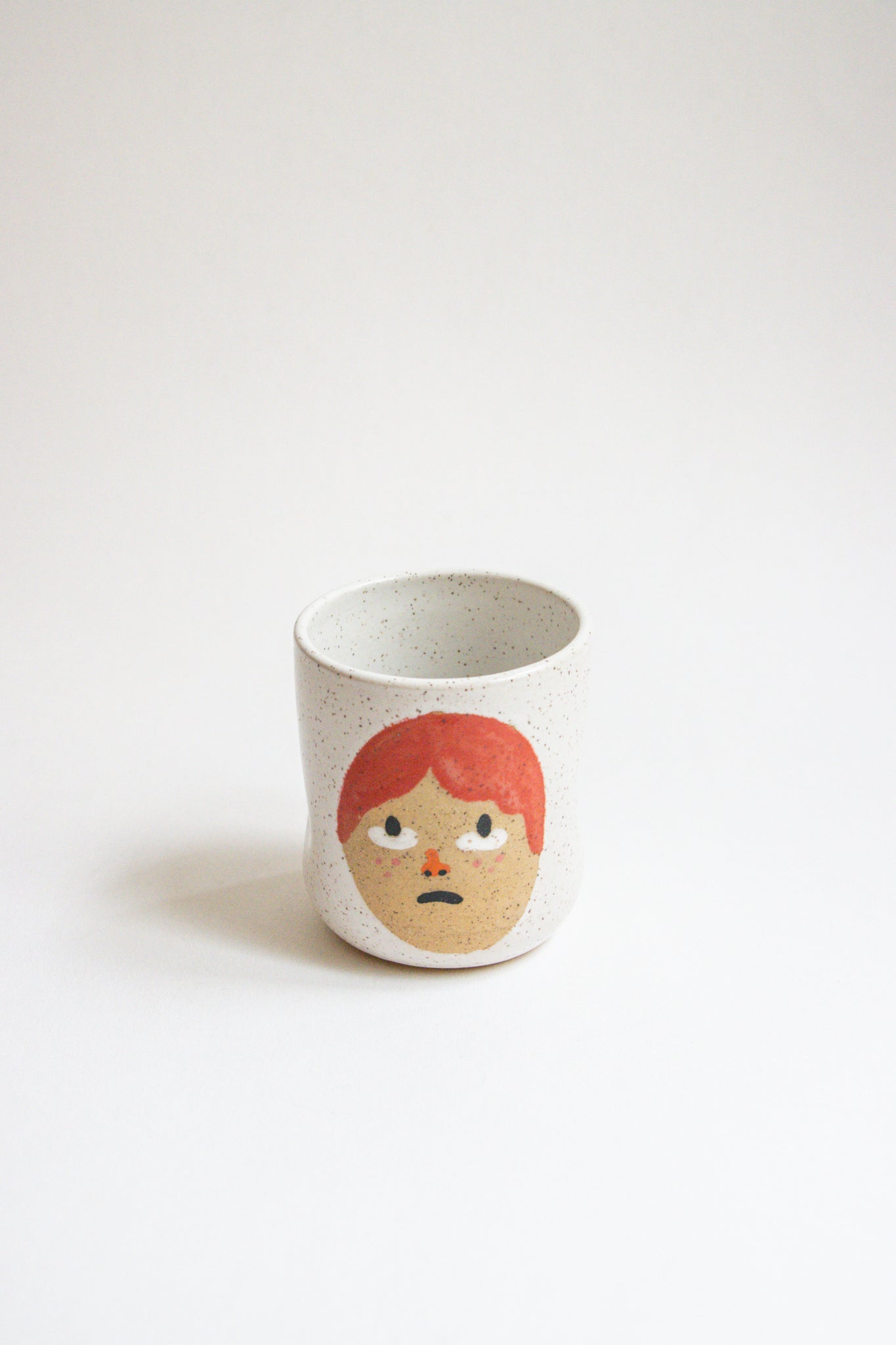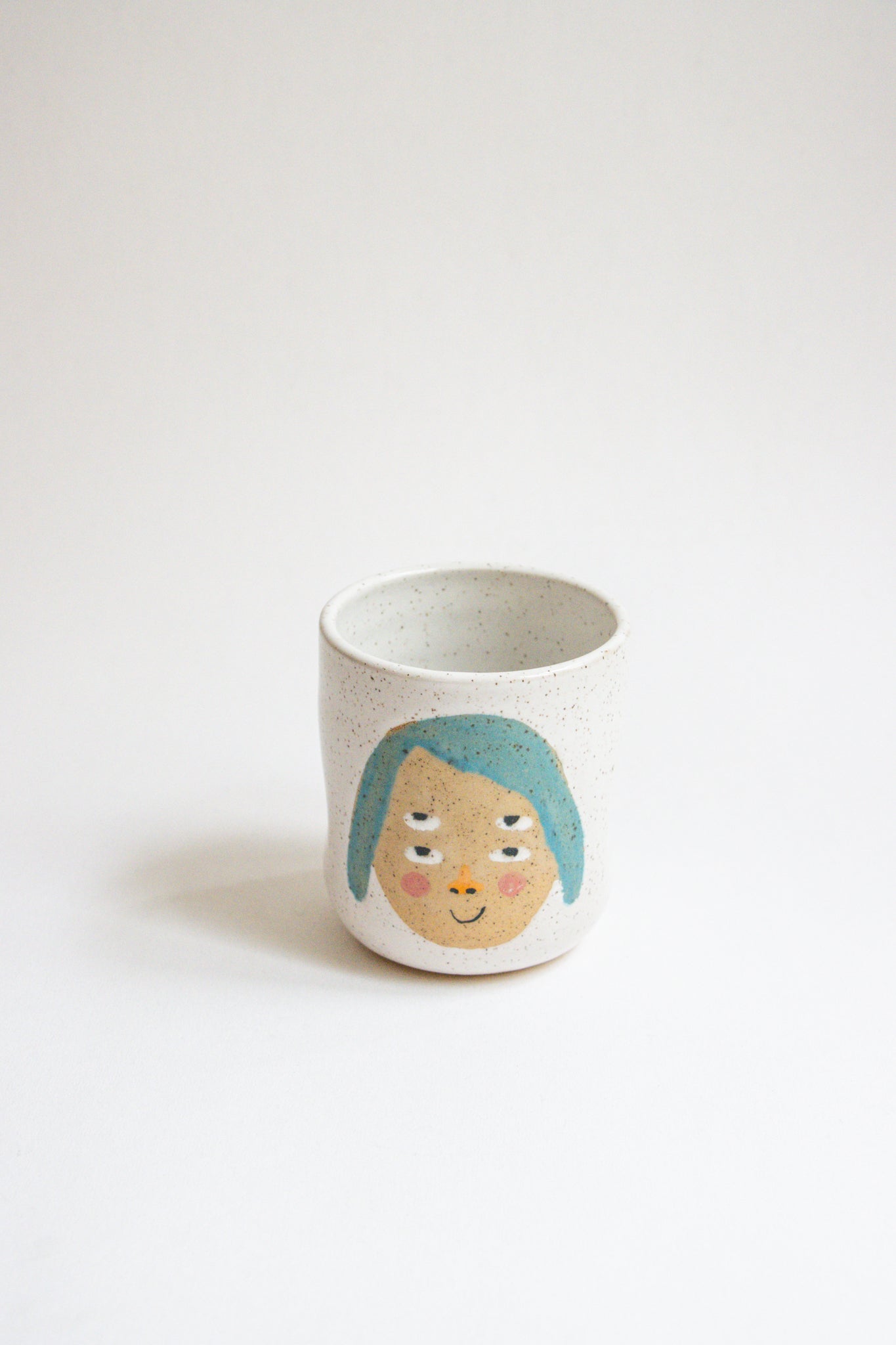 These funky face cups are sure to brighten your day with their unique personalities! Each one is unique and 100% one of a kind. Cup features a white speckles glaze and finger imprints for easy holding.