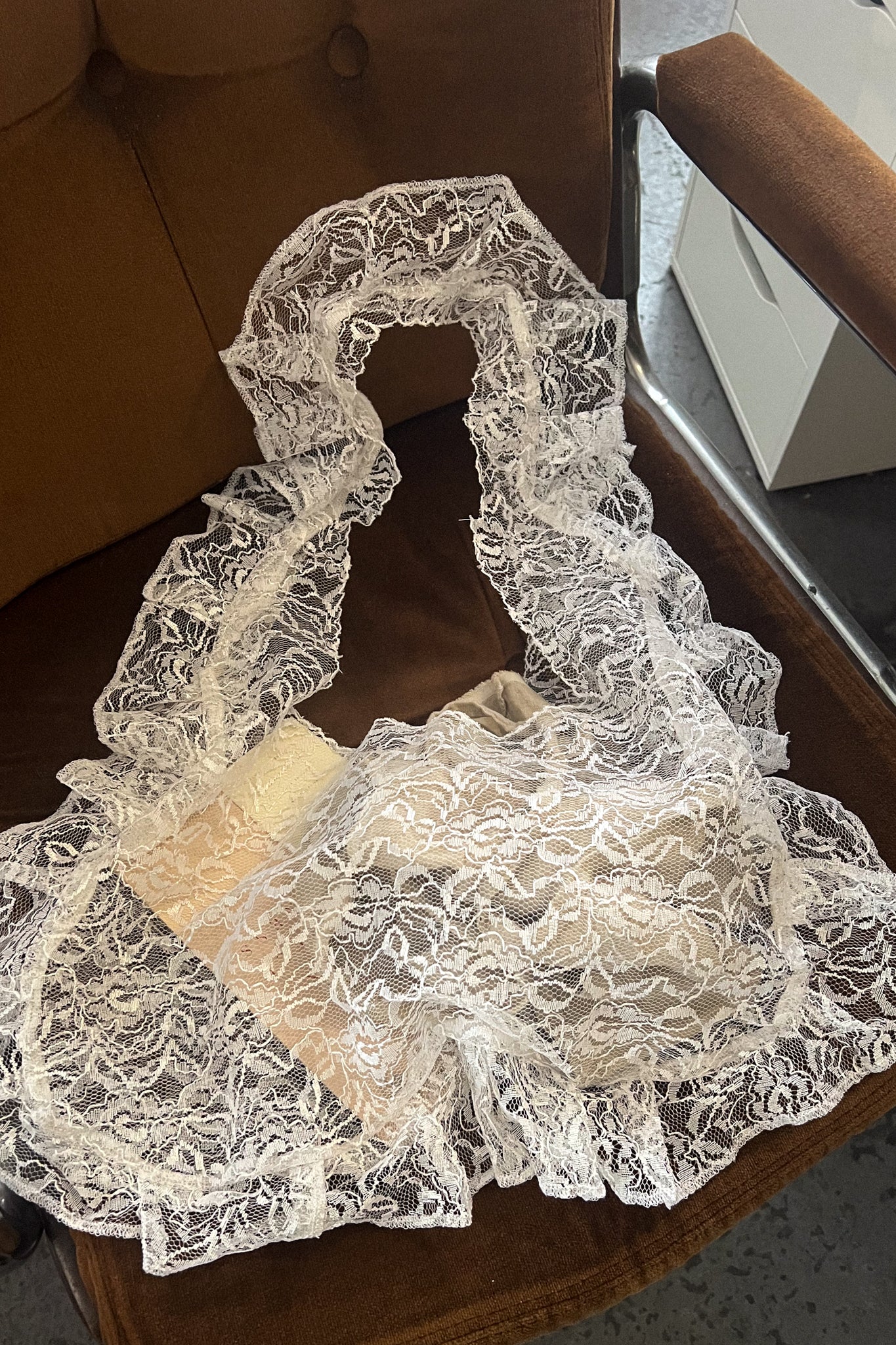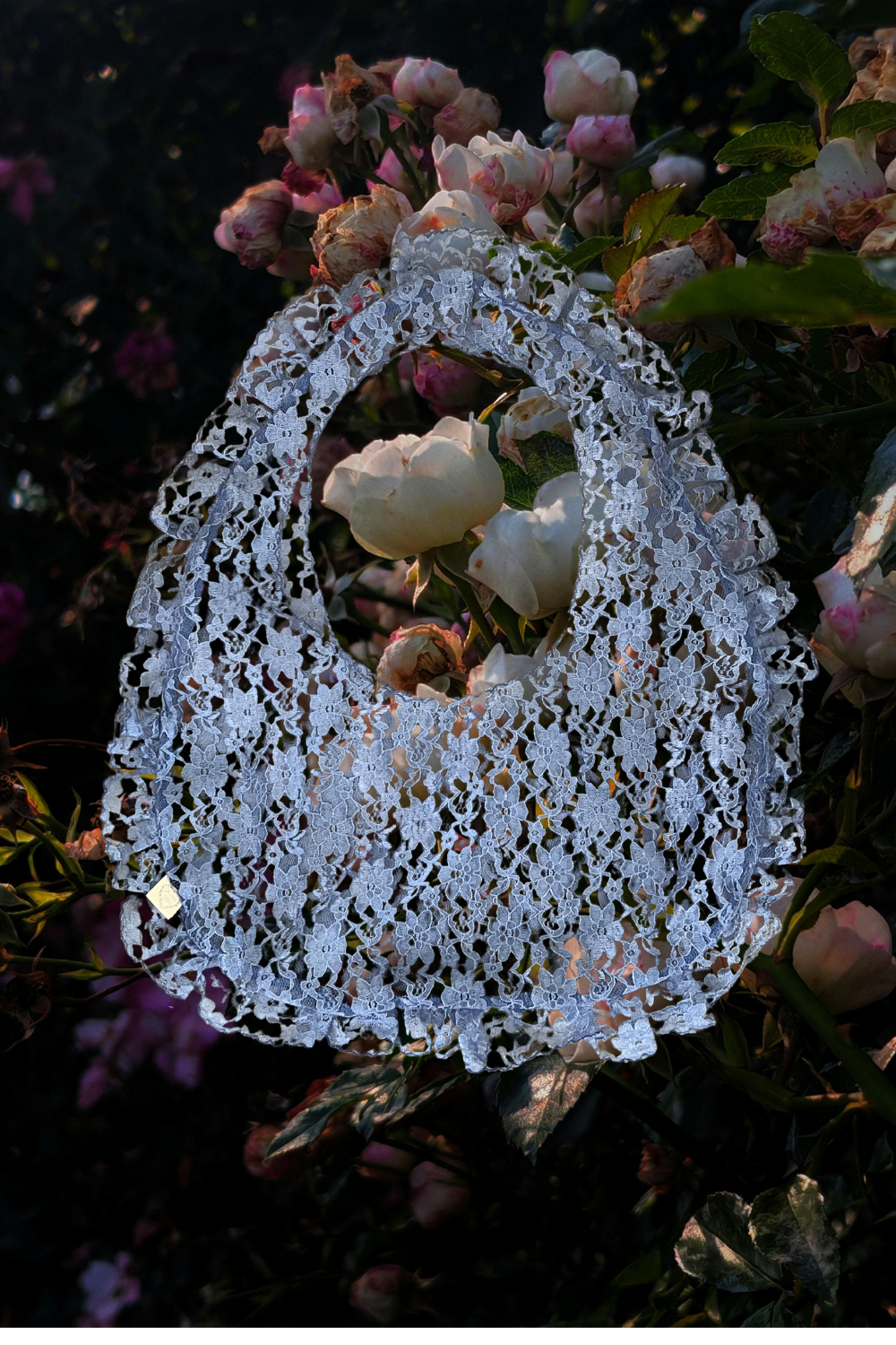 Each bag is handmade so may vary slightly by size/lace details