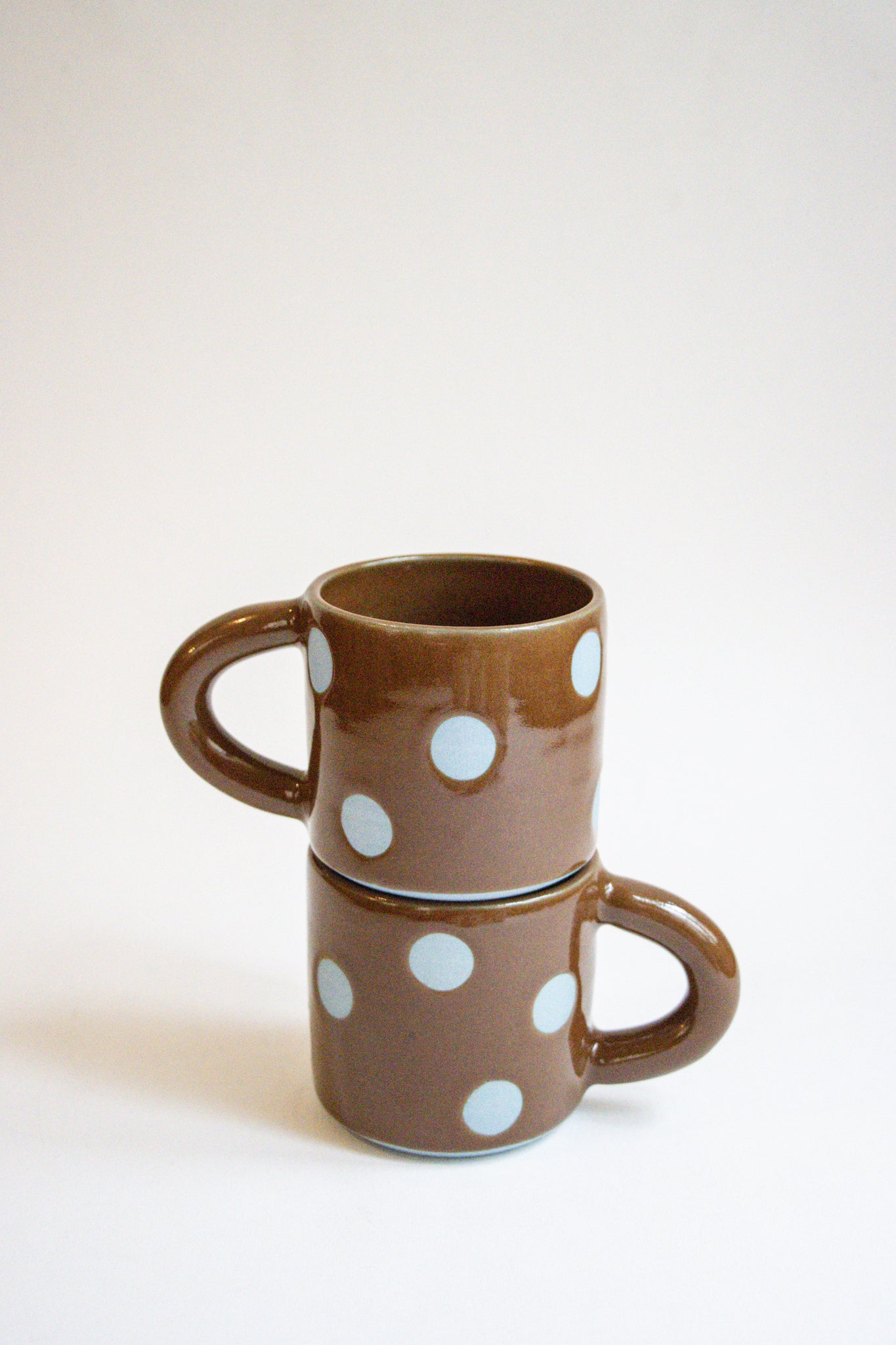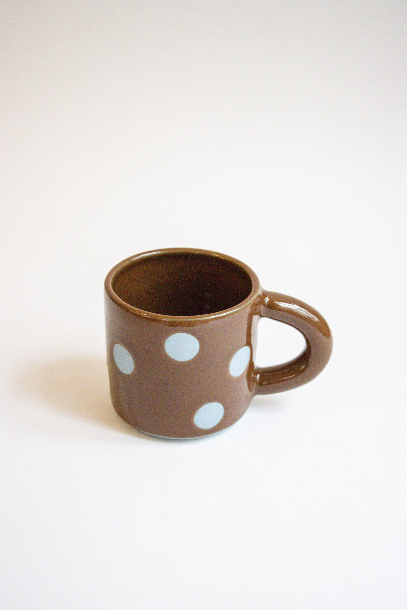 The playful yet chic pattern was inspired by polka dotted clothing and textiles. This cutie little mug is perfect for espresso or a little cup of tea! It's bigger than an espresso cup so it's a bit more multipurpose!
