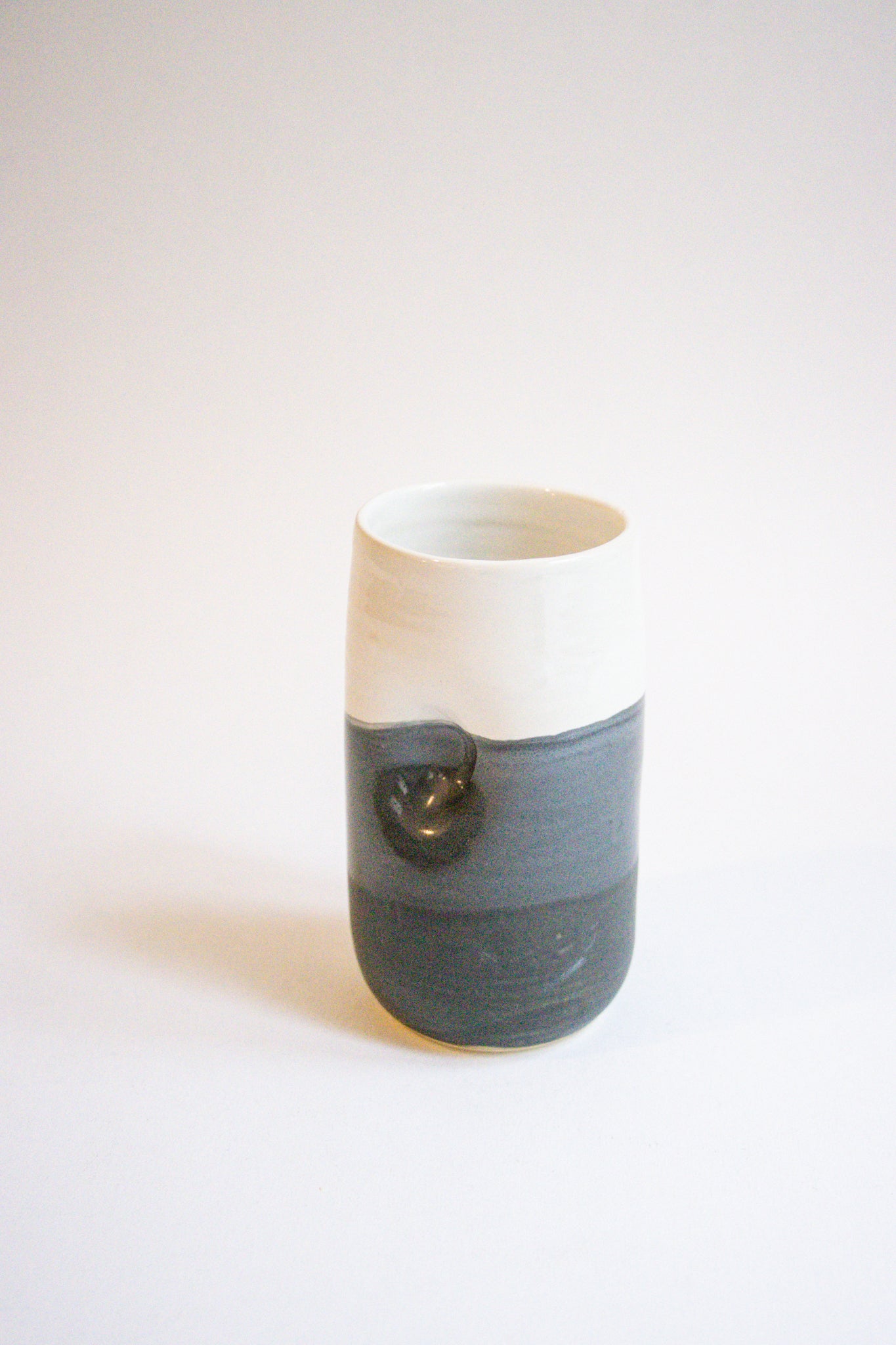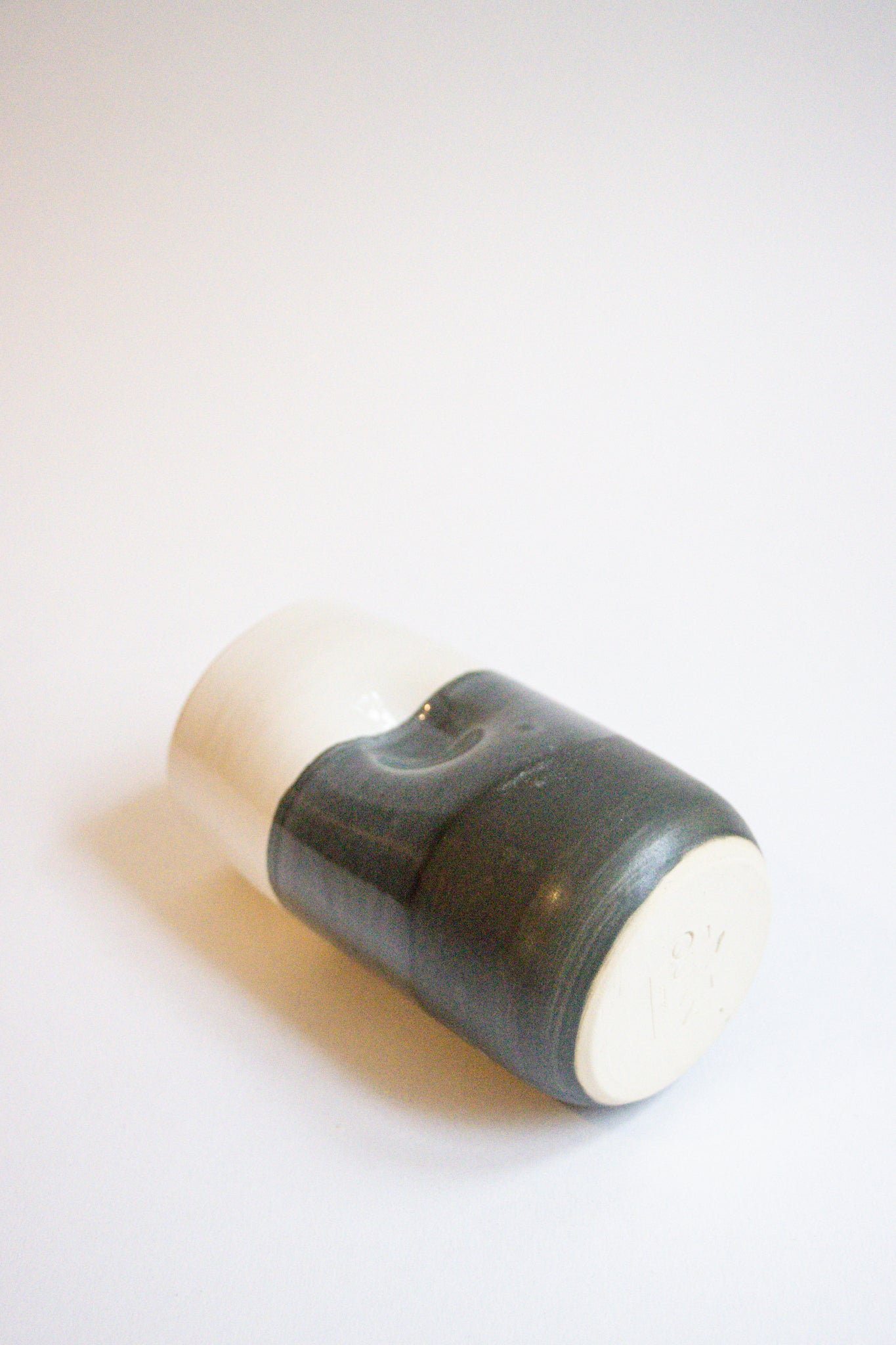 Enjoy your favourite drinks from this beautiful black and white striped cup! Each cup features a thumb rest dimple on either side. The glaze design will vary with each piece giving you a one of a kind cup.