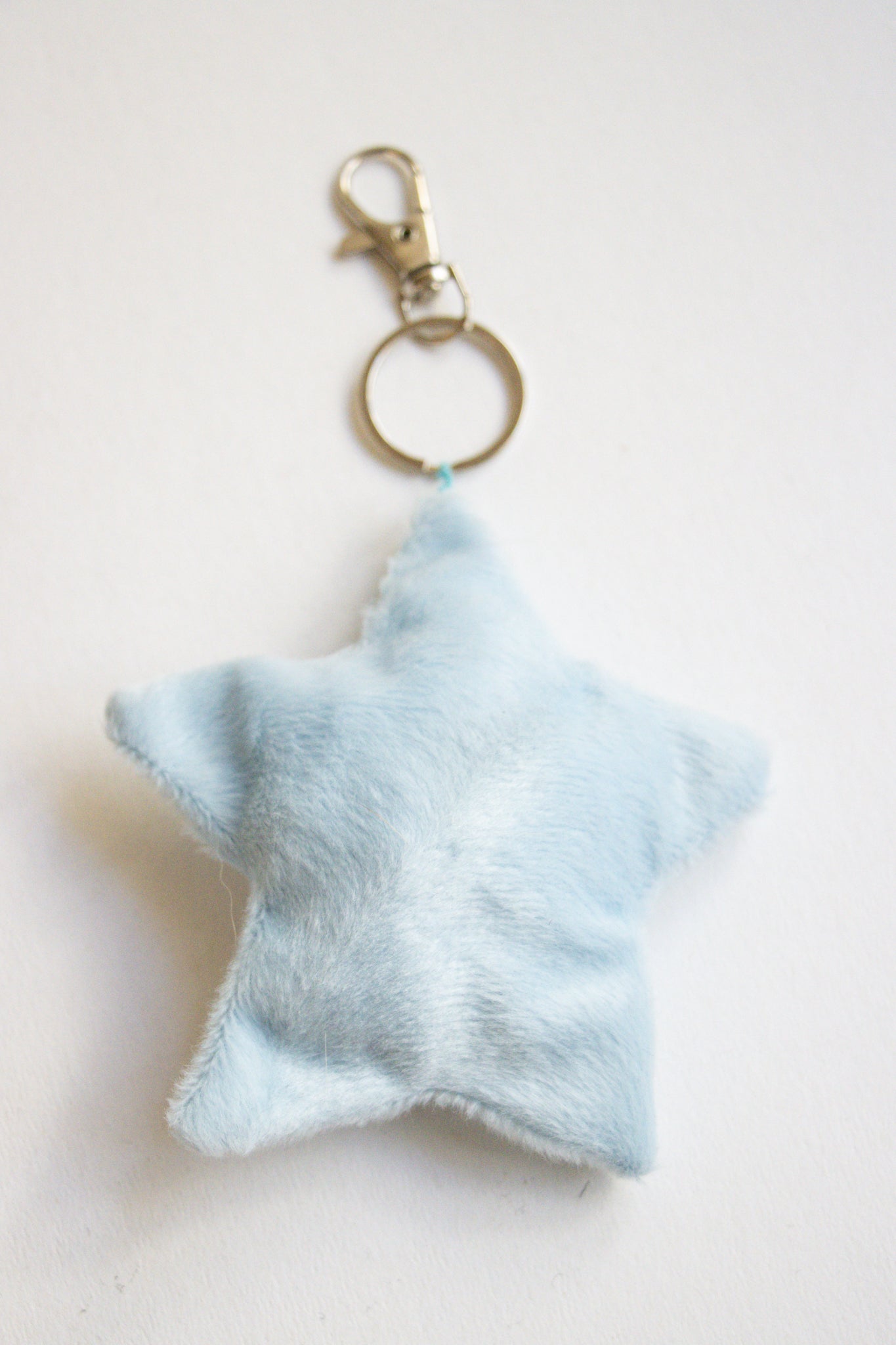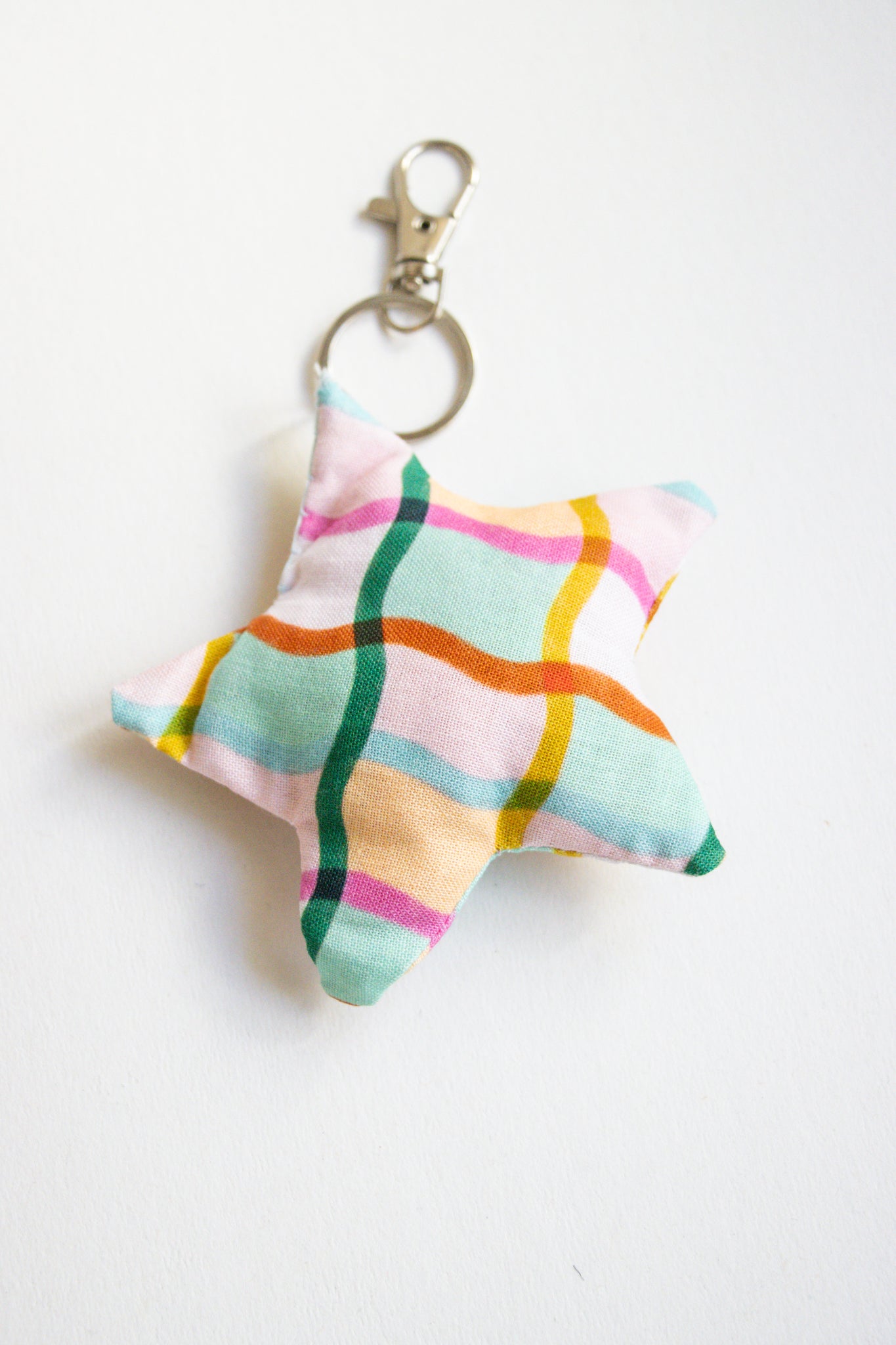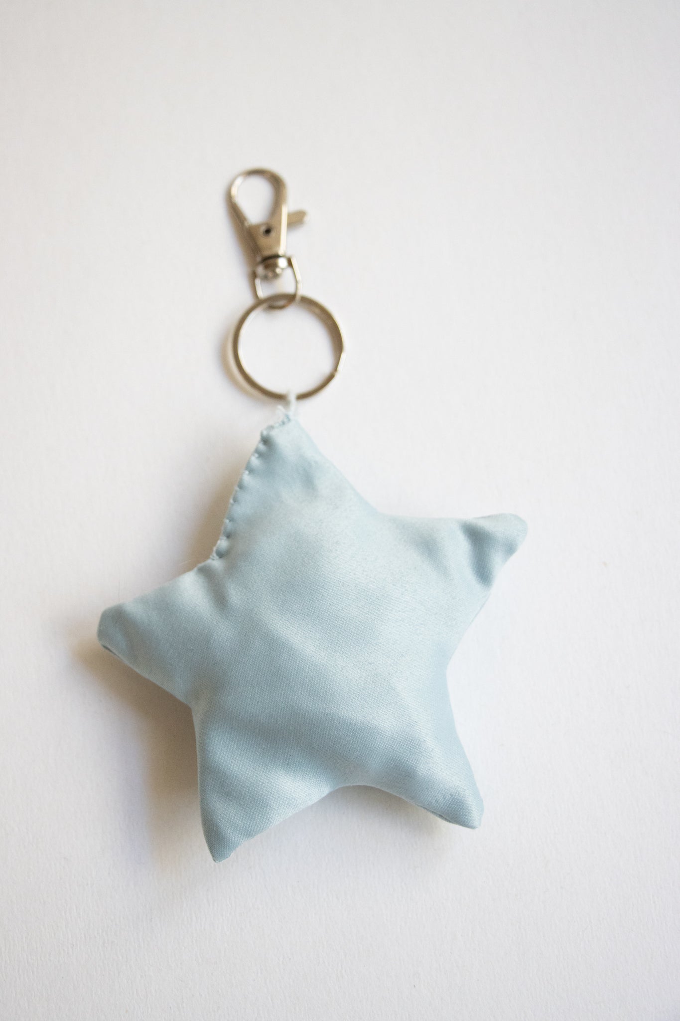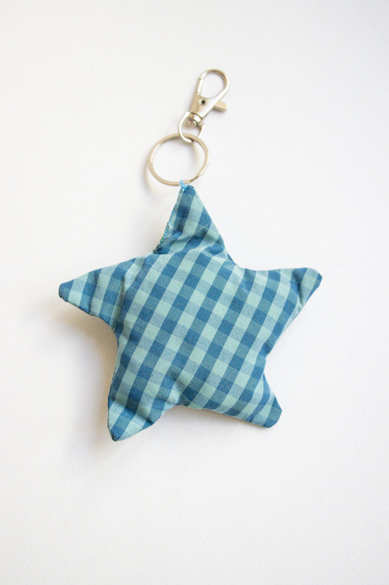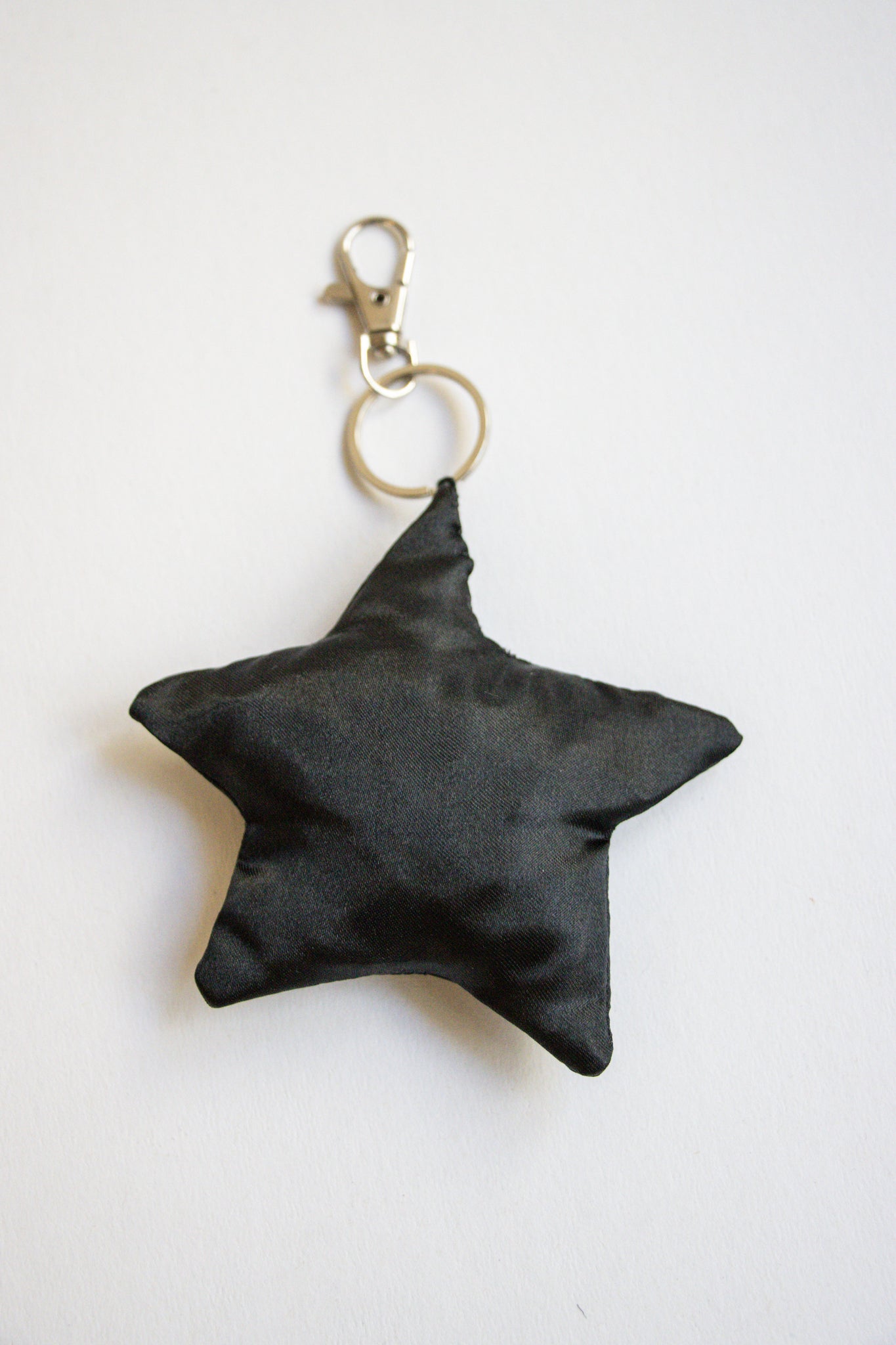 These handmade star charms are made with fabric scraps and leftover fabric from bags. The inside is stuffed with leftover fabric shreds and polyester filling. Each has a detachable swivel keychain and can be easily attached to keys or bag.