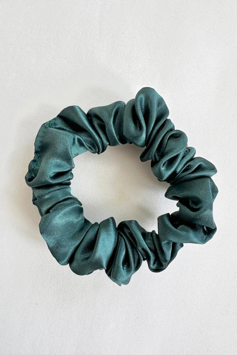 A tiny baby satin scrunchie. Perfect for thin hair, space buns, or just an easy hair tie.